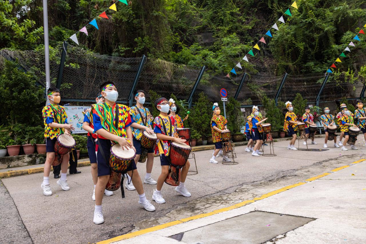 非洲鼓、粵劇、合唱團、光輝樂隊、直笛校隊、手鐘、中國舞、英語音樂劇等