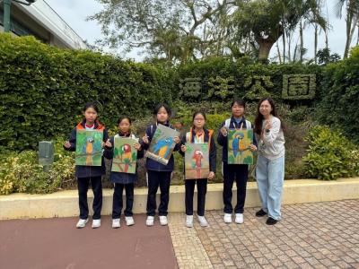 視藝校隊10位同學今天順利完成「邊學·邊畫」海洋公園繪畫比賽,繪畫園區內的金剛鸚鵡