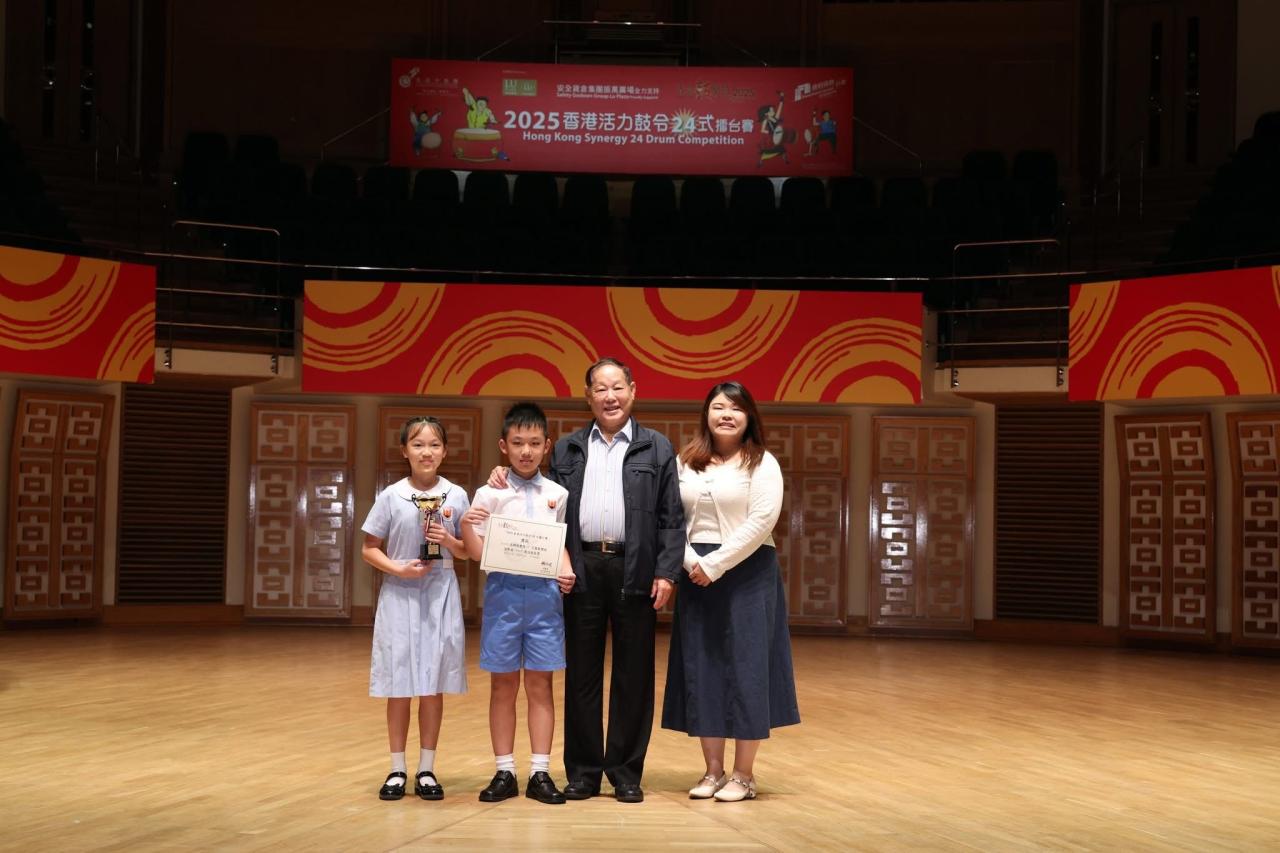 中國鼓校隊於「2025香港活力鼓令24式擂台賽」「中國鼓樂組」迎新組獲得最佳服裝獎,於1/11/2025出席頒獎典禮及觀看小學組決賽賽事。
